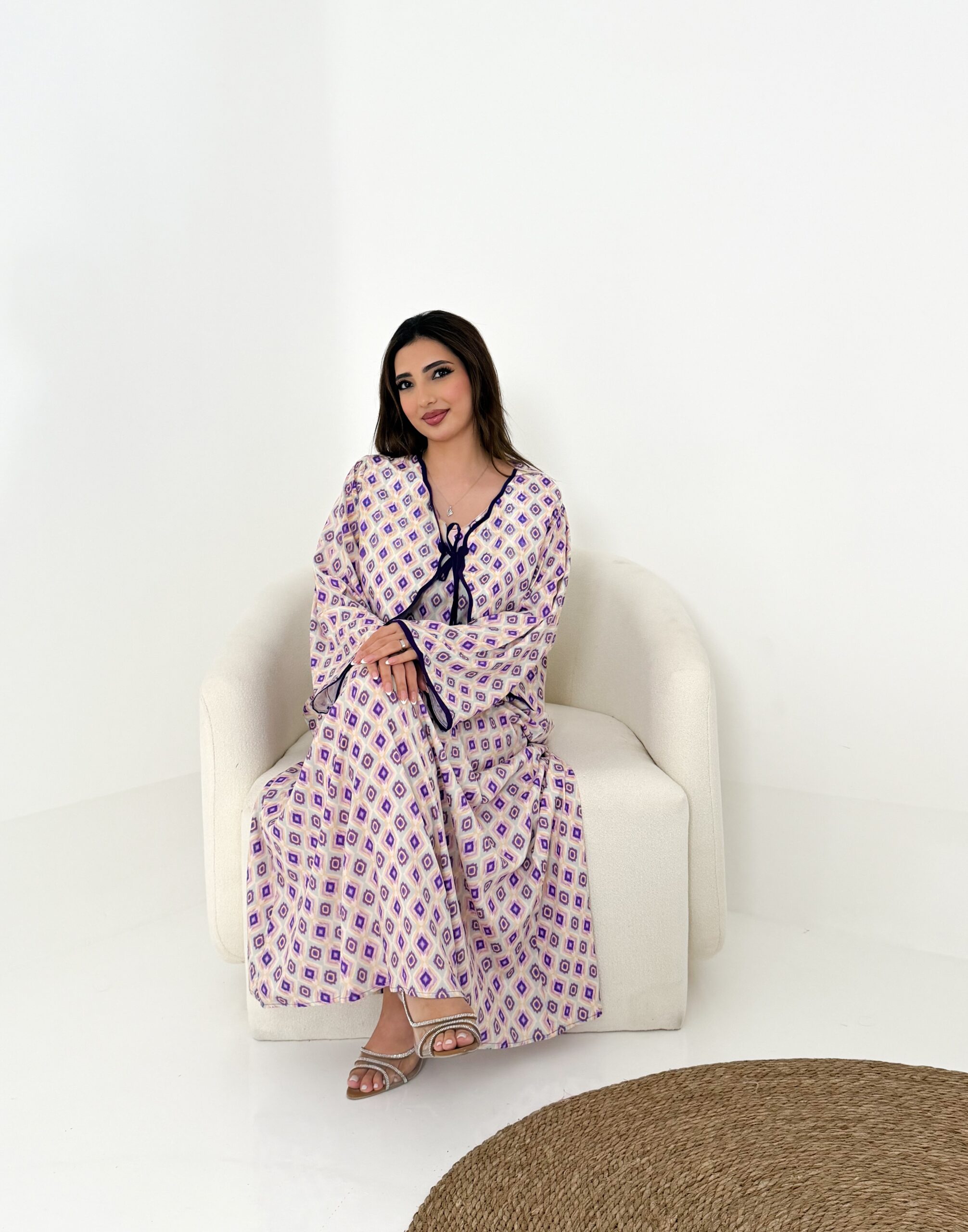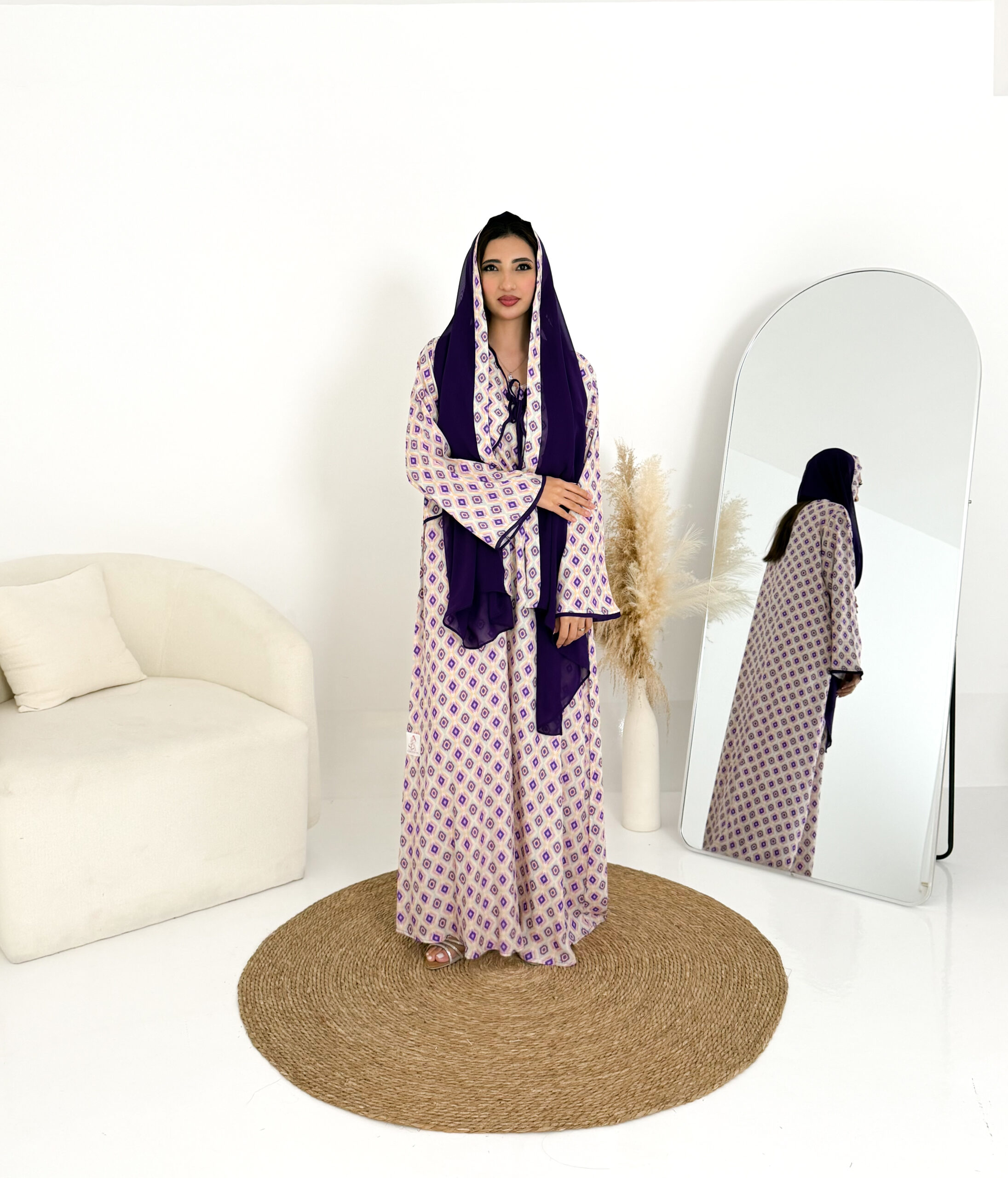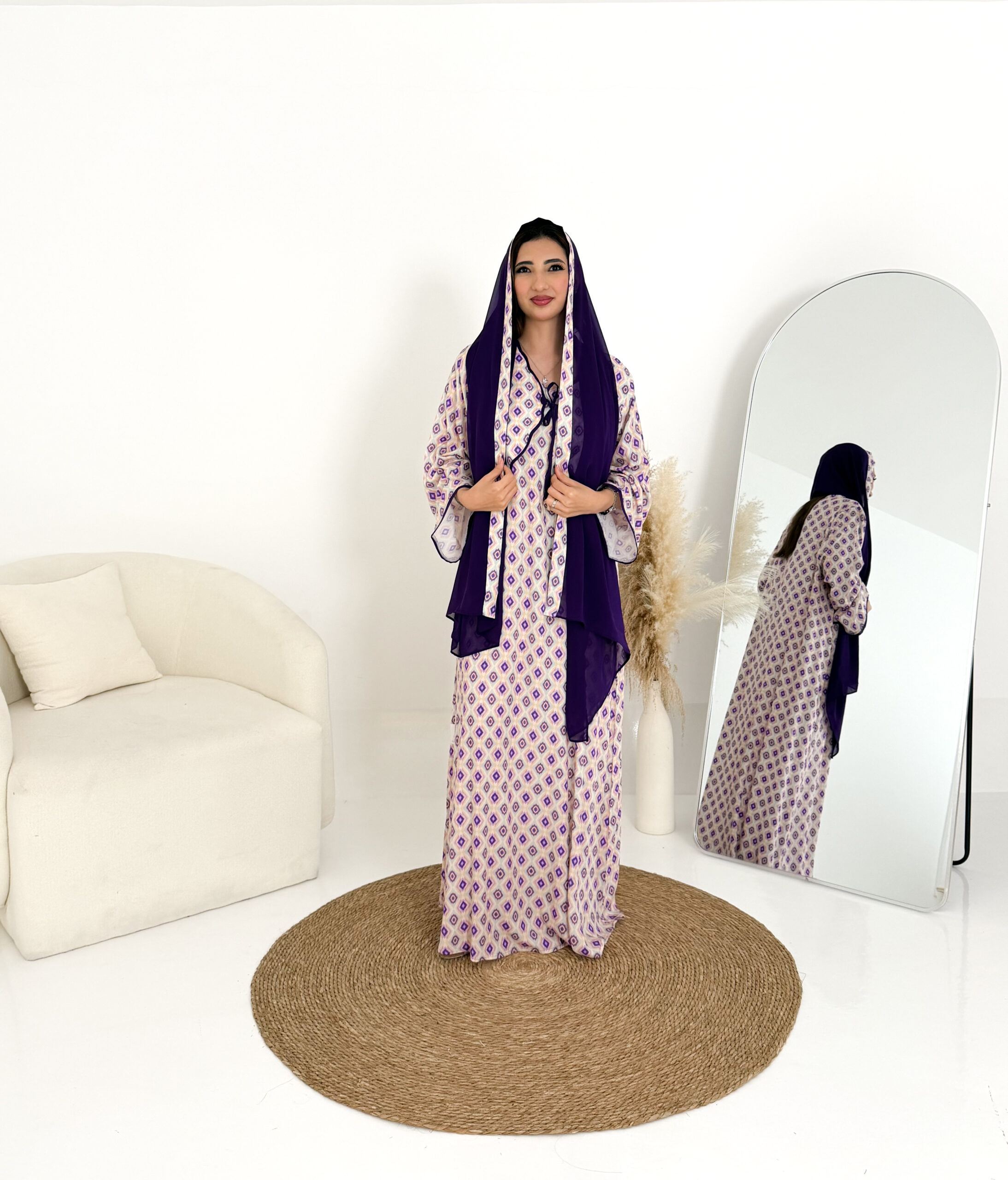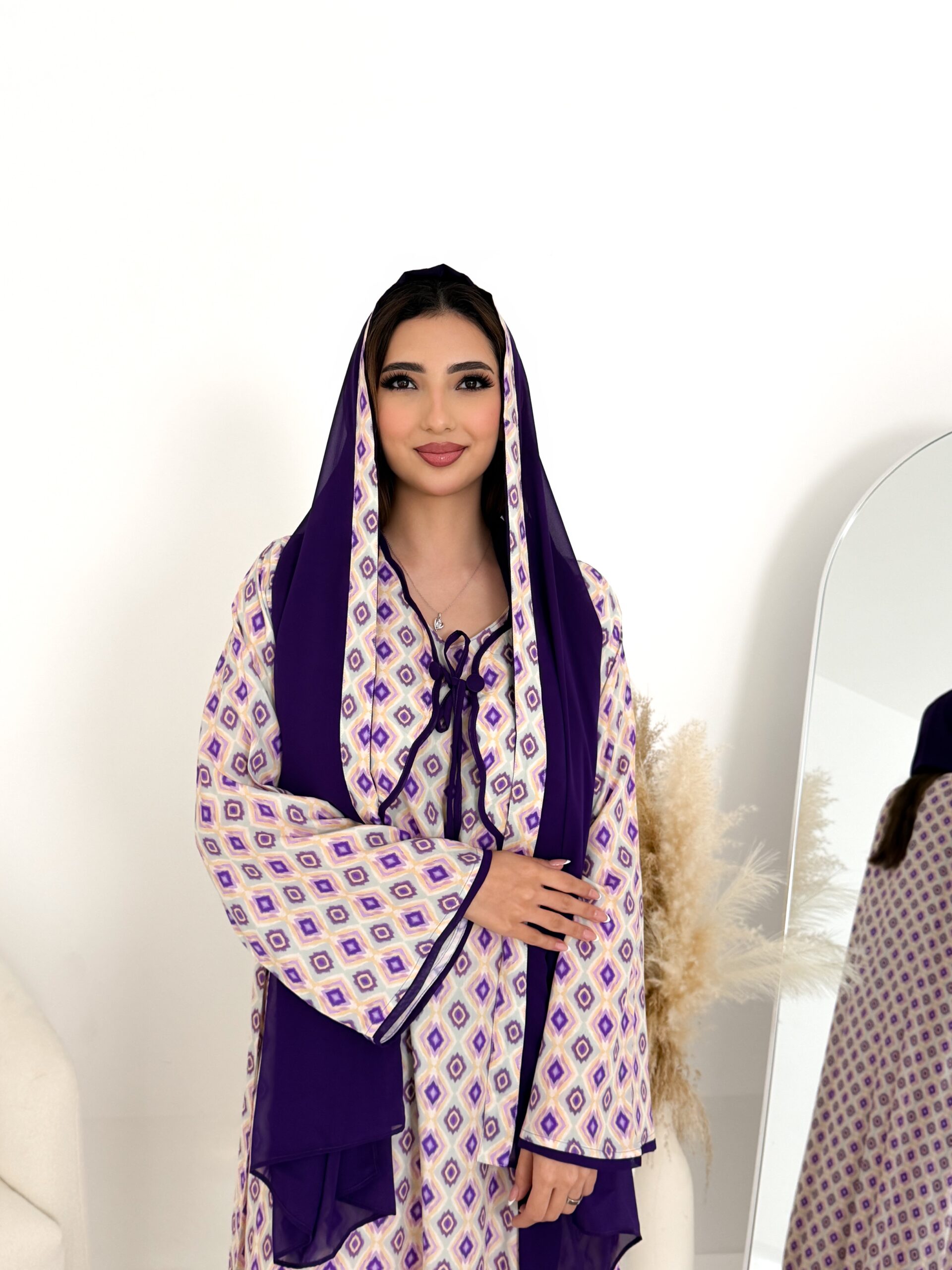 تصميم عملي وأنيق يمنحك الراحة طوال اليوم، ويأتي معها شيلة شيفون خفيفة تكمل إطلالتك بلمسة ناعمة