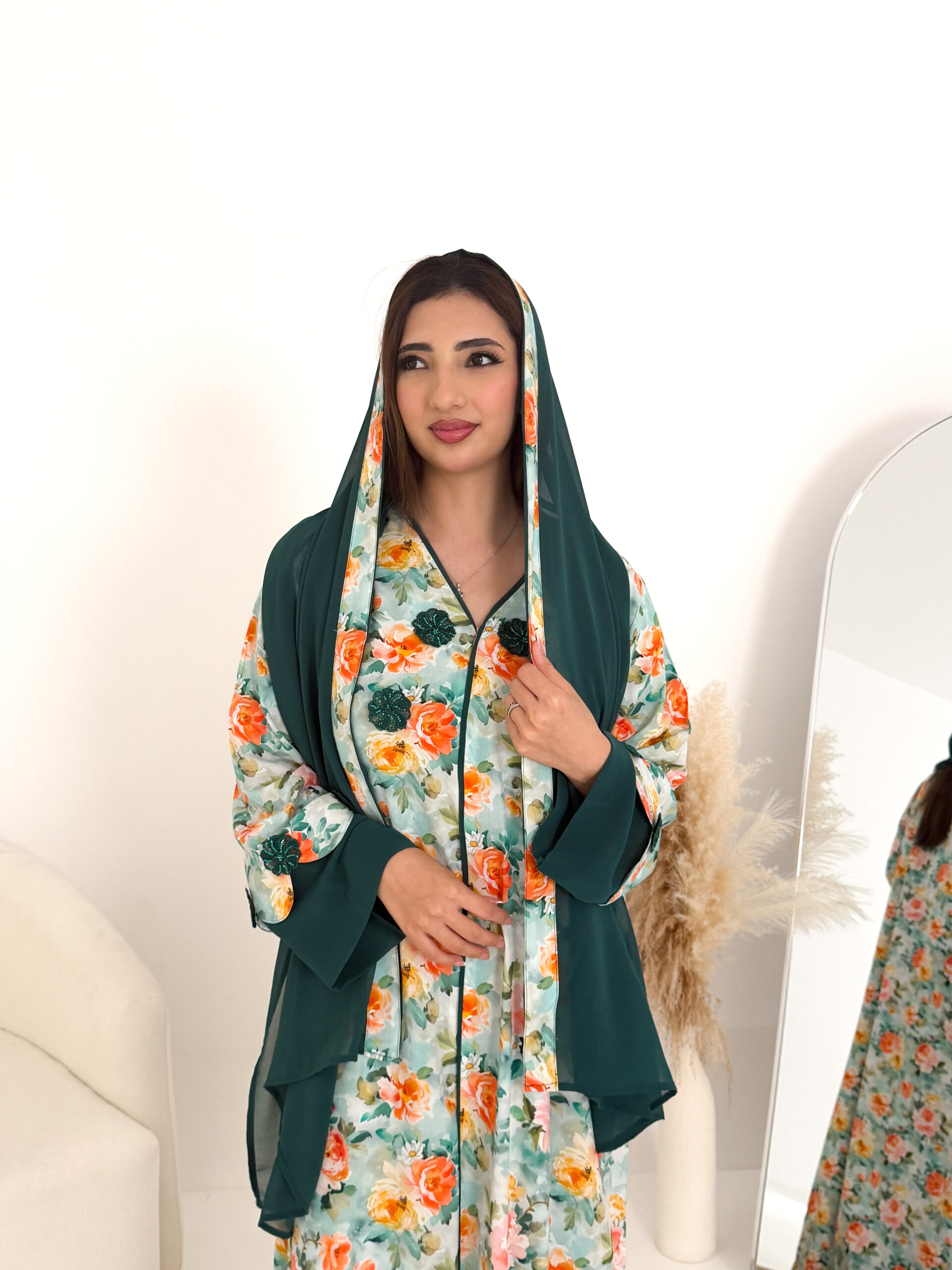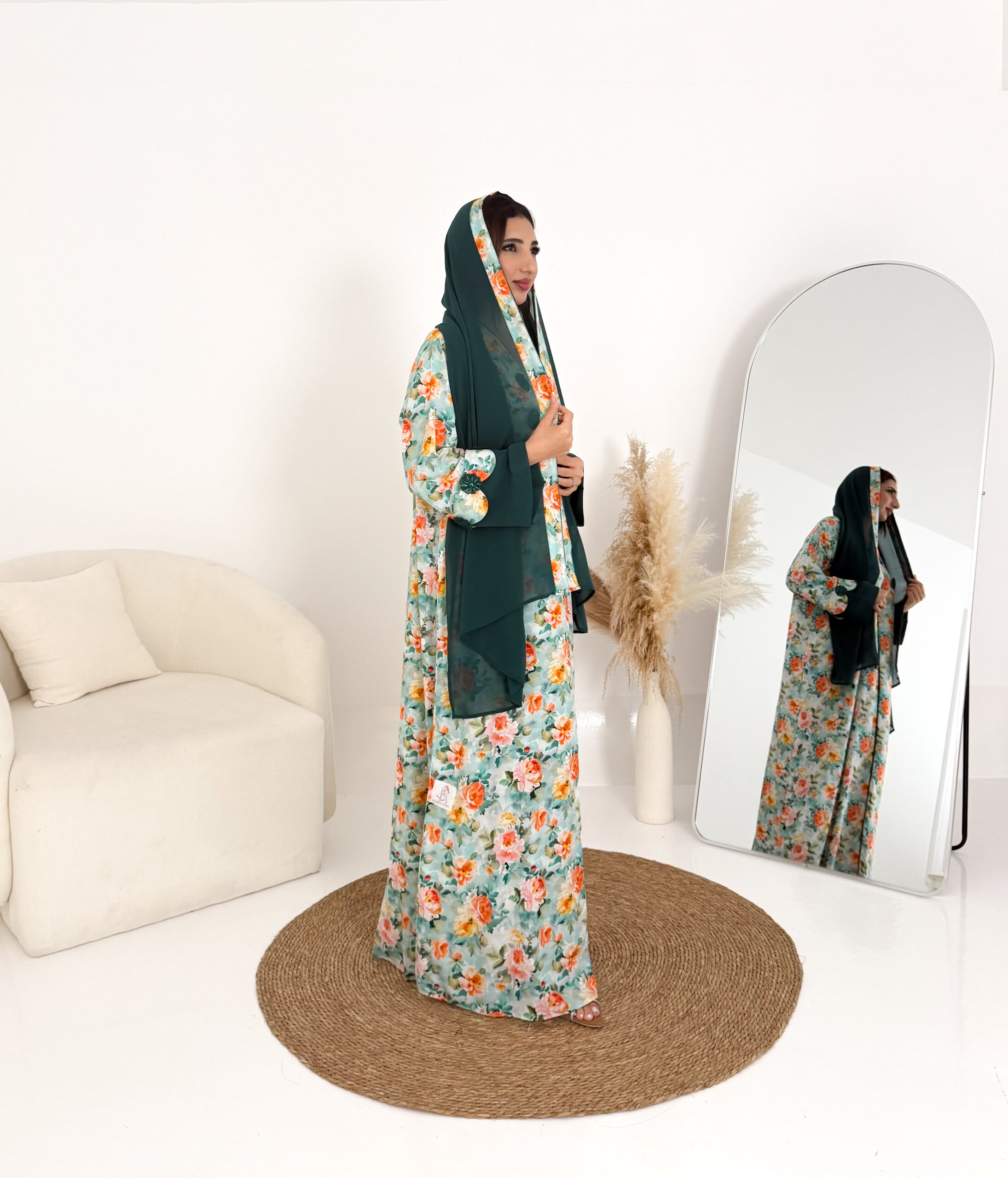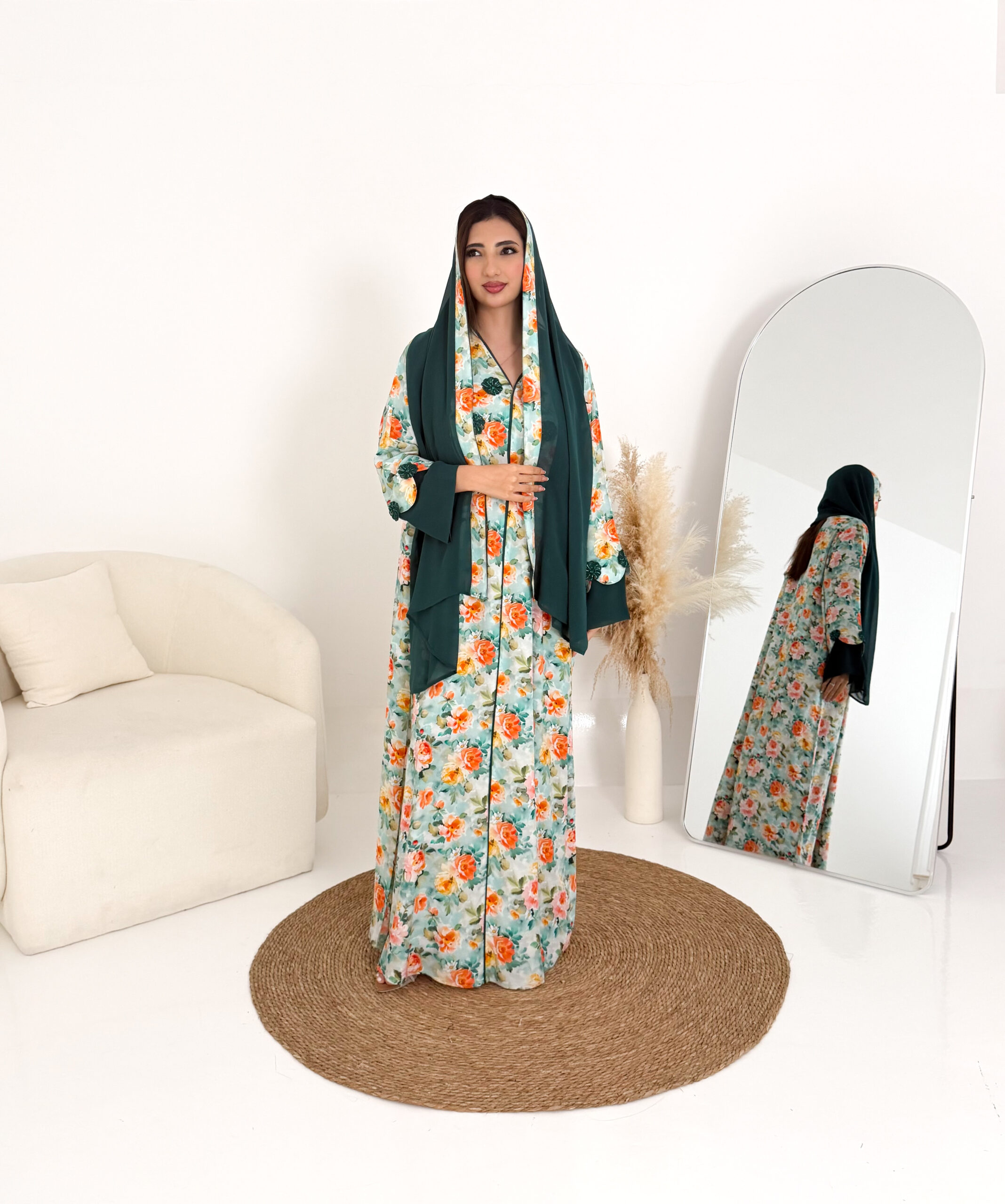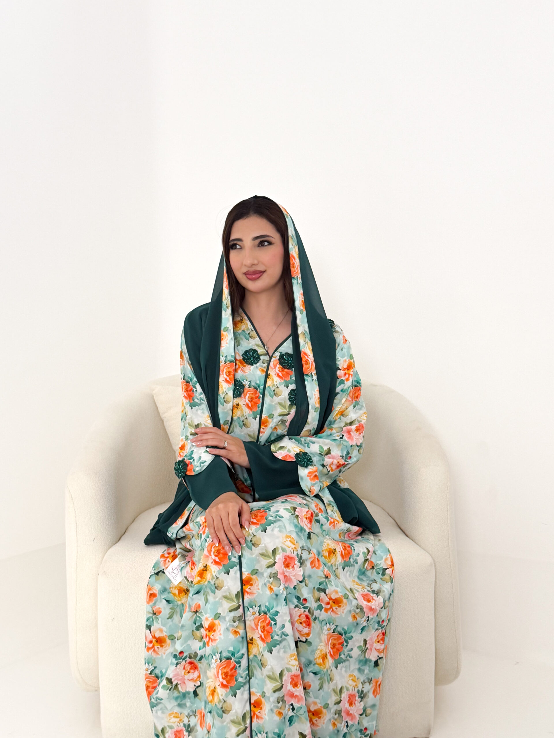 تصميم عملي وأنيق يمنحك الراحة طوال اليوم، ويأتي معها شيلة شيفون خفيفة تكمل إطلالتك بلمسة ناعمة