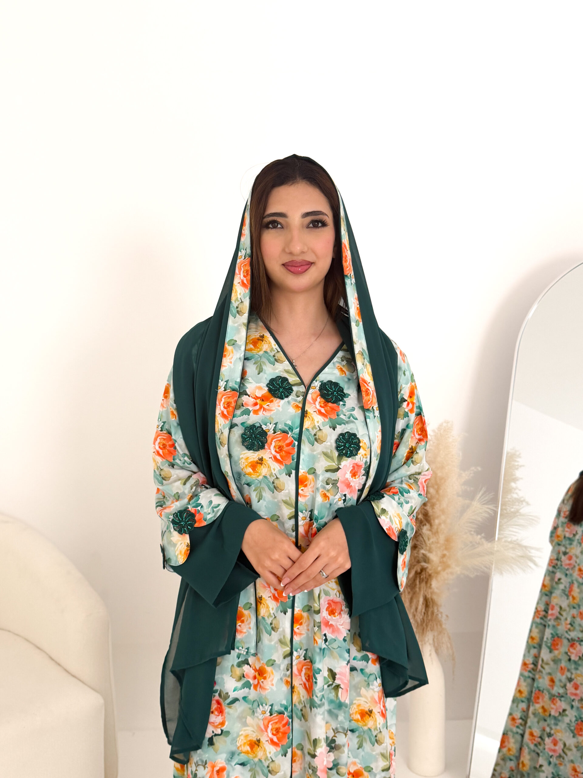 A practical and elegant design that keeps you comfortable throughout the day, complemented with a light chiffon sheila for a soft, refined look.