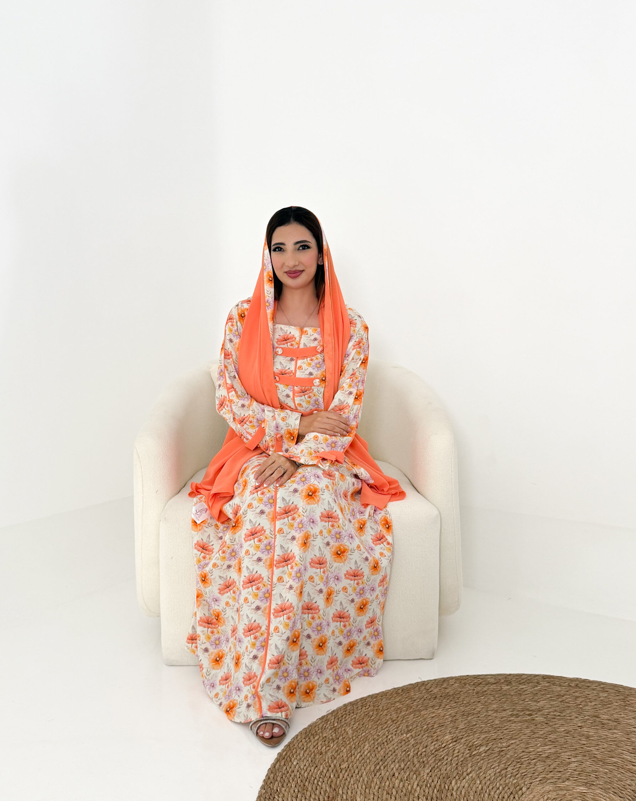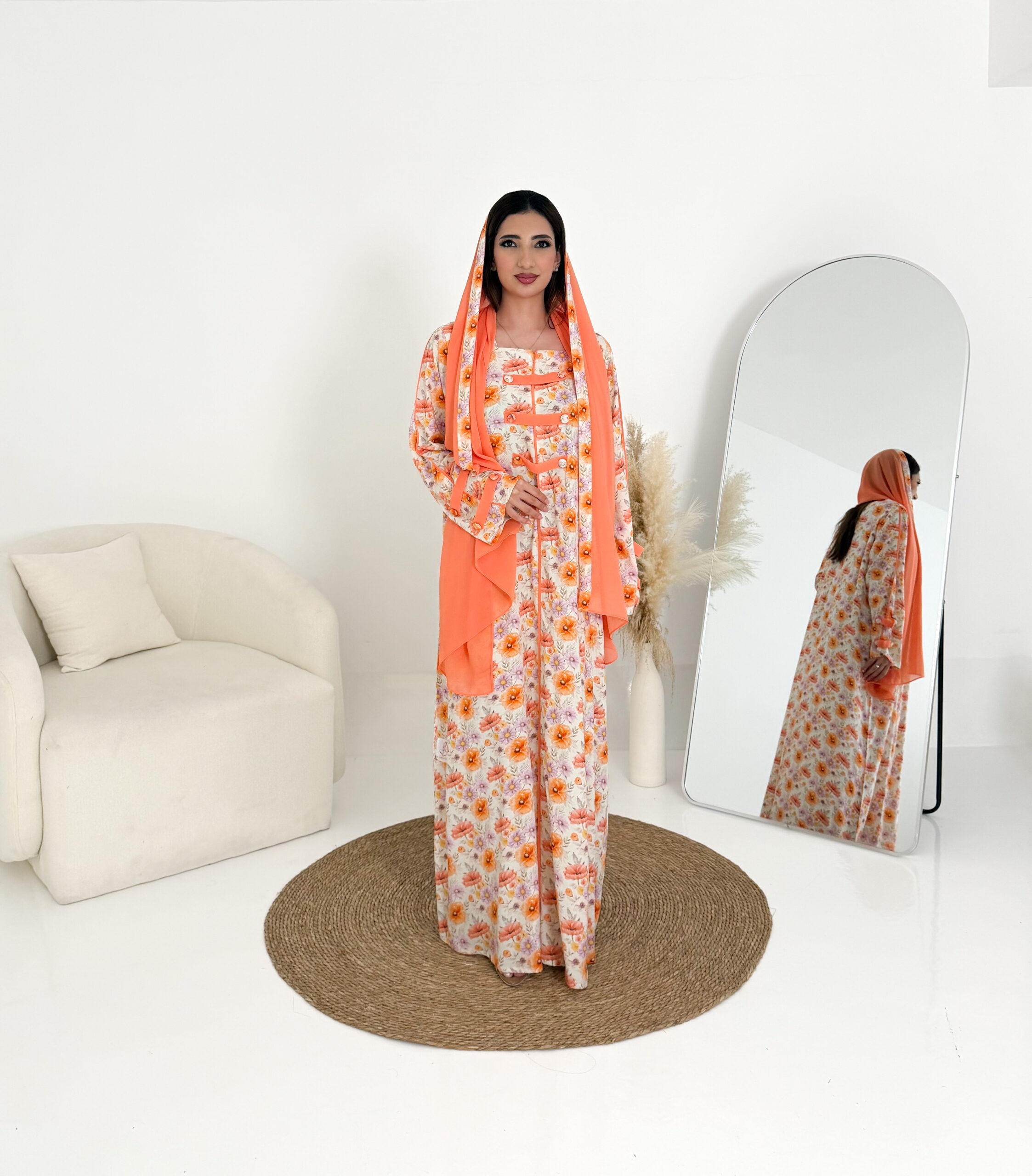 يمنحك تصميمها الأنيق والناعم إطلالة أنثوية رقيقة طوال اليوم، وتأتي مع شيلة شيفون خفيفة تضيف لمسة انسيابية راقية تكمل أناقتك بكل نعومة