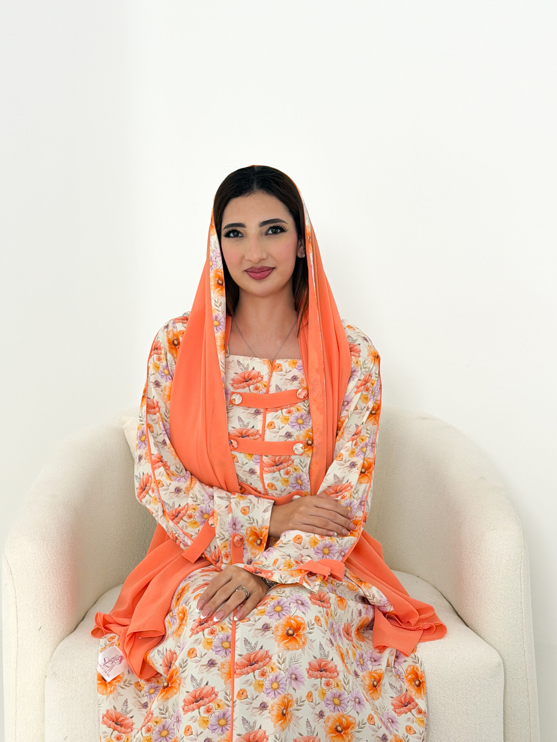 Its elegant and delicate design gives you a soft, feminine look throughout the day, and it comes with a light chiffon sheila that adds a flowing, refined touch to complete your look